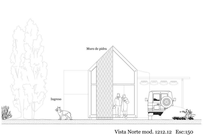 La cabaña se cierra hacia el Oeste de donde vienen los vientos predominantes y genera el hall frío e ingreso de la cabaña a resguardo del mismo en la cara este de la construcción. El Estar comedor se abre hacia el punto cardinal óptimo, con un amplio deck exterior, aprovechando el sol y su vista principal “el Cerro Horqueta”, siendo el mismo el más imponente por su altura y proximidad.